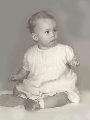 This is another picture of me. I guess I was about 5 or 6 months old. The interesting thing is that our girls had a dress very similar to this that Aunt Jac sent them. It was a pale pink.